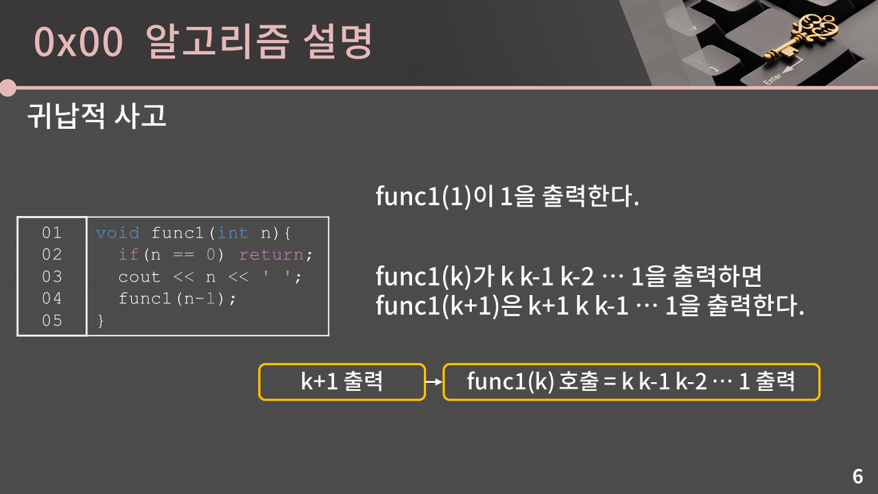 함수 호출 과정을 하나하나 따라가는 대신 귀납적인 사고를 통해서 이해하도록 하자.